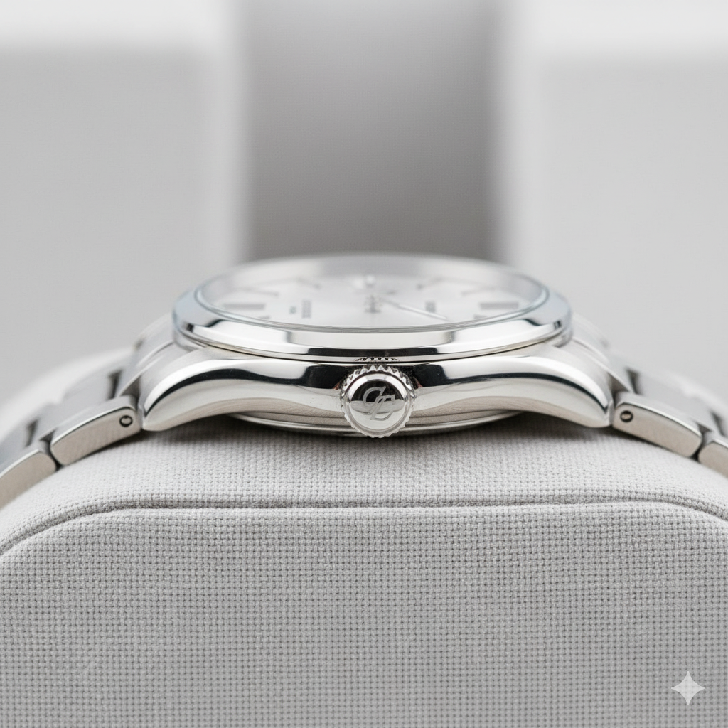 - Aesthetic & Finish: The brilliant silver sunray dial and polished indices define this as a truly elegant and modern minimalist watch.